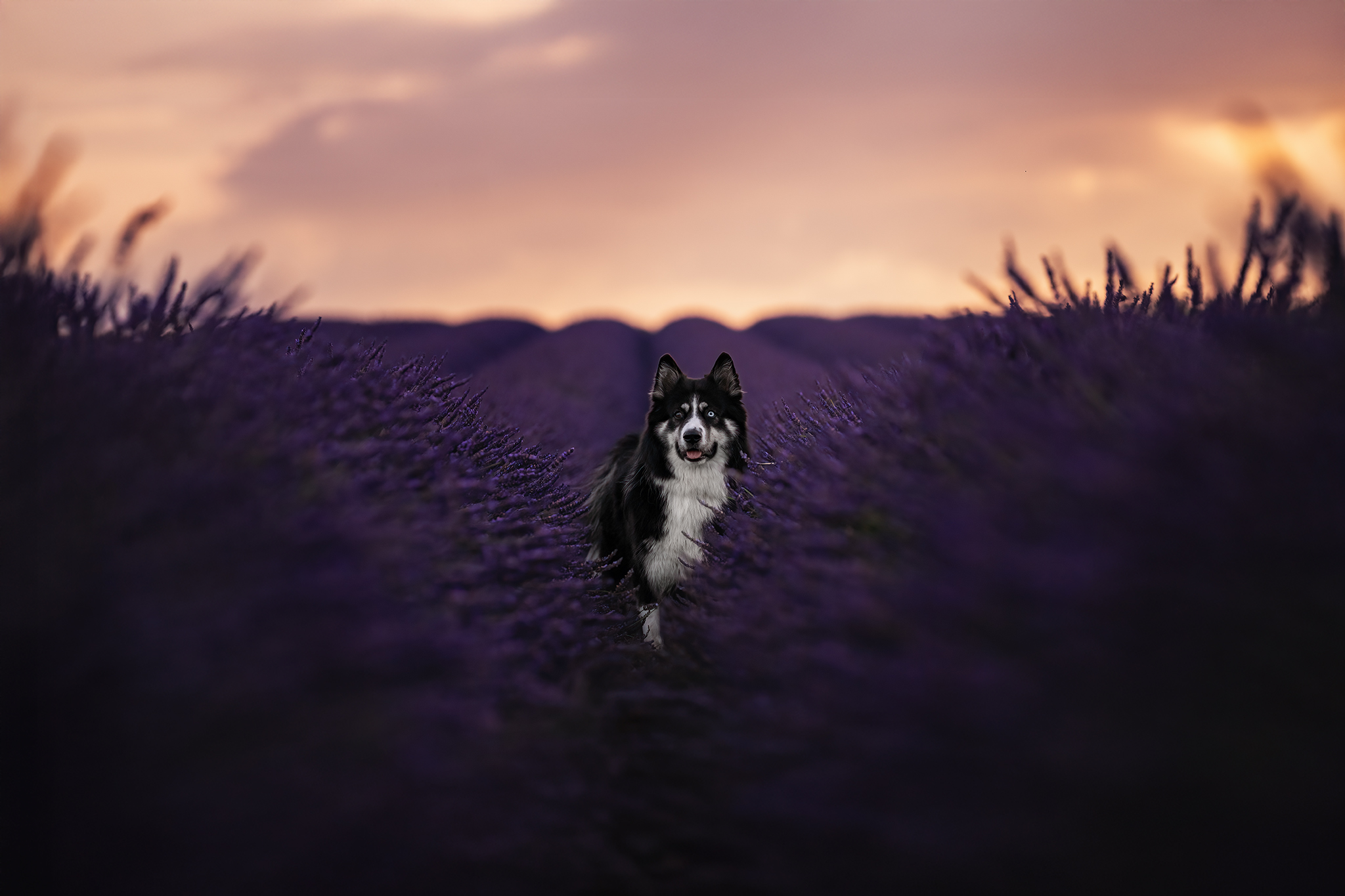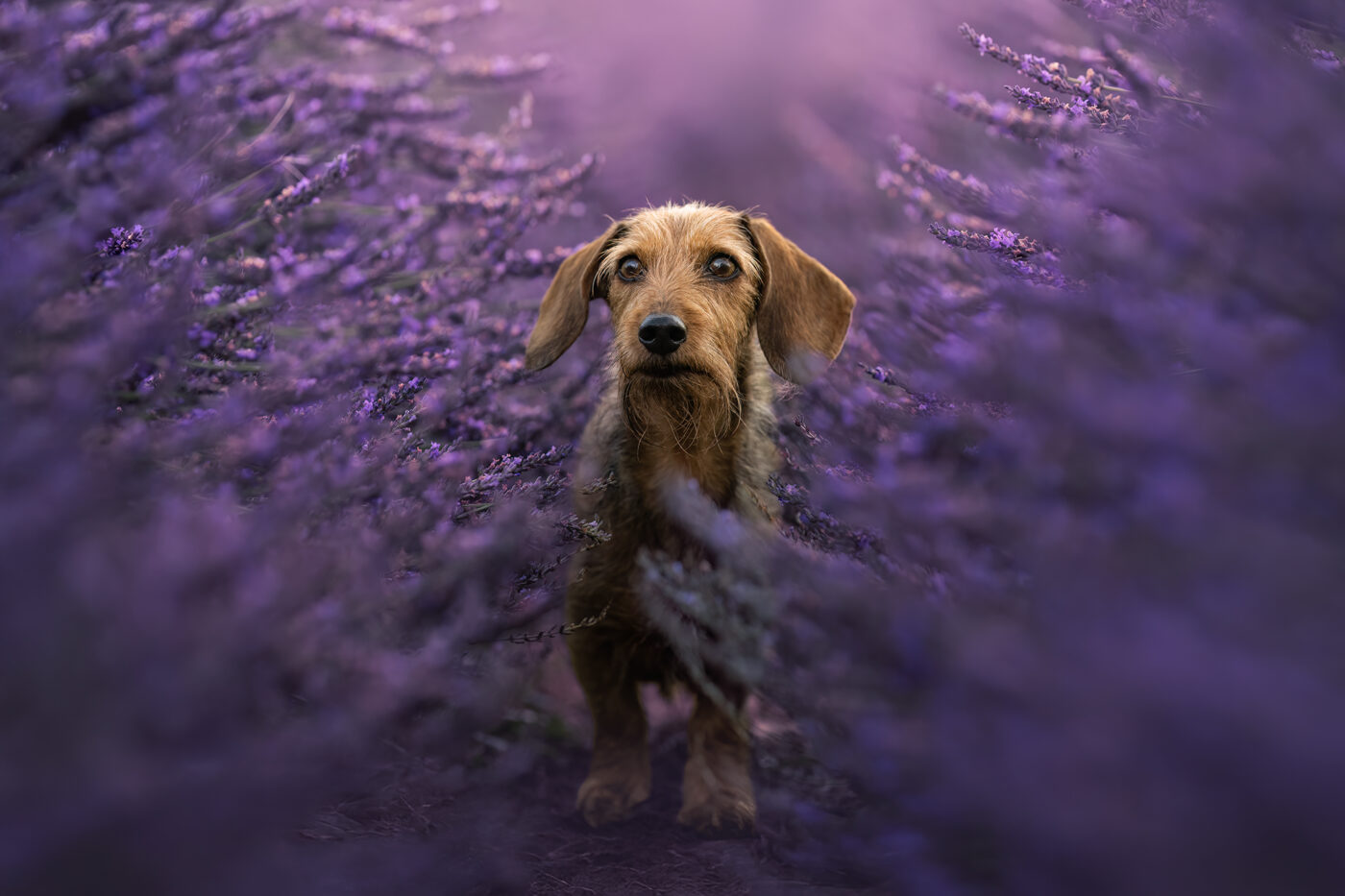 Das Lavendelshooting findet nur an wenigen ausgewählten Terminen statt und lebt von Ruhe, Farbe und Sommerstimmung. Früh morgens entstehen hier emotionale, warme Bilder – auf Wunsch auch gemeinsam mit dir und deinem Hund.