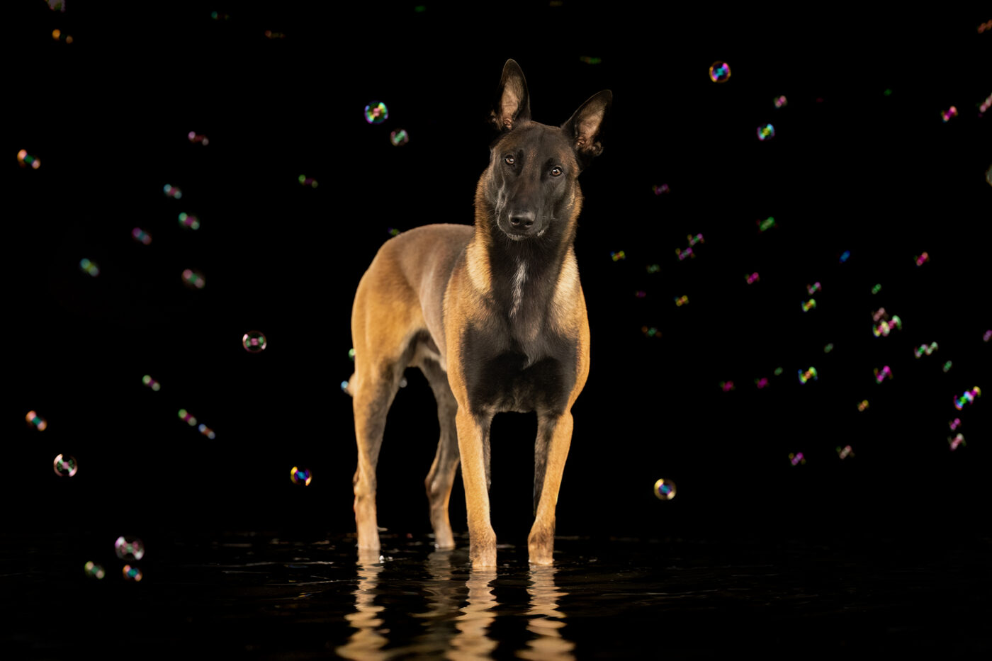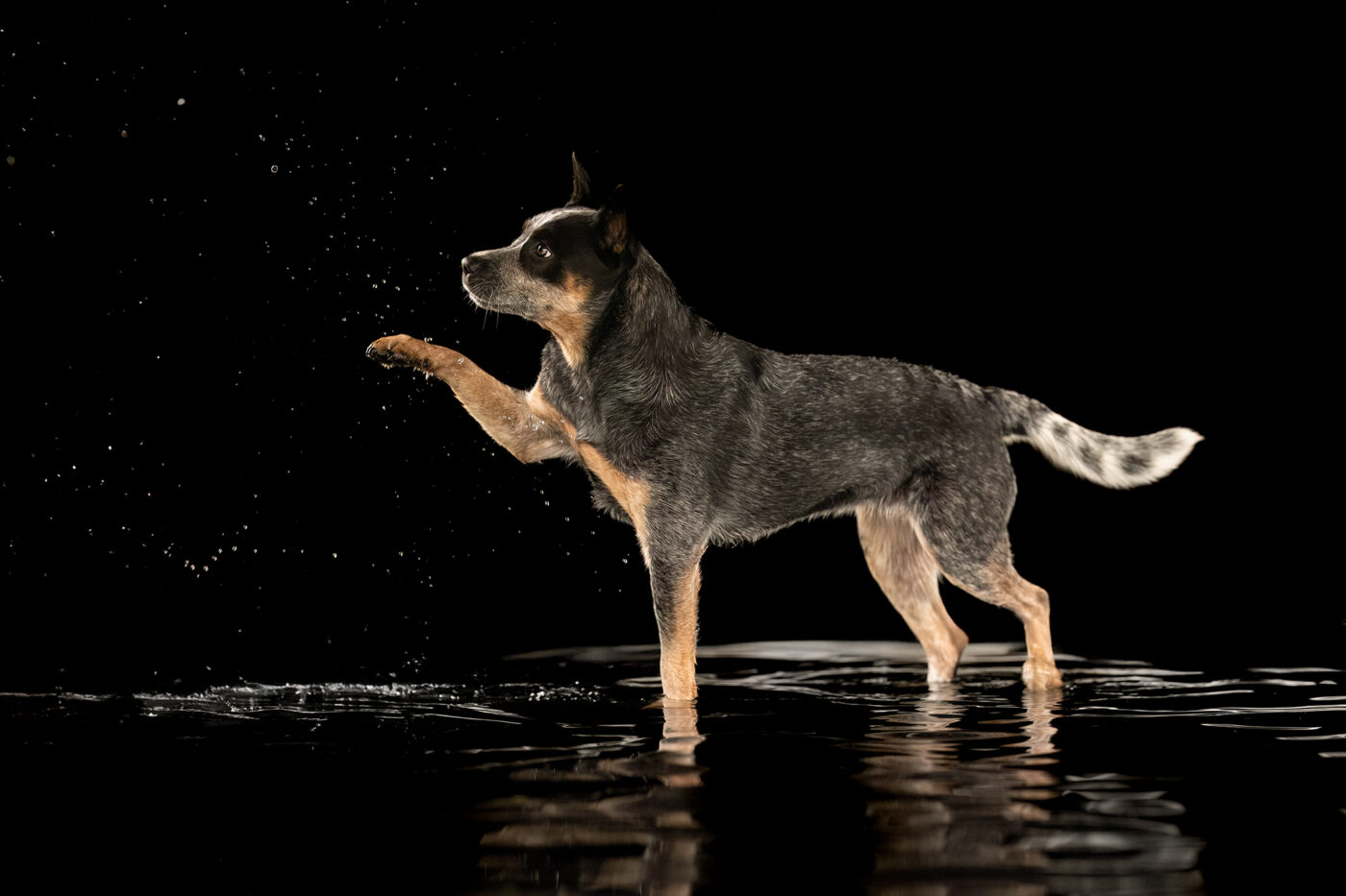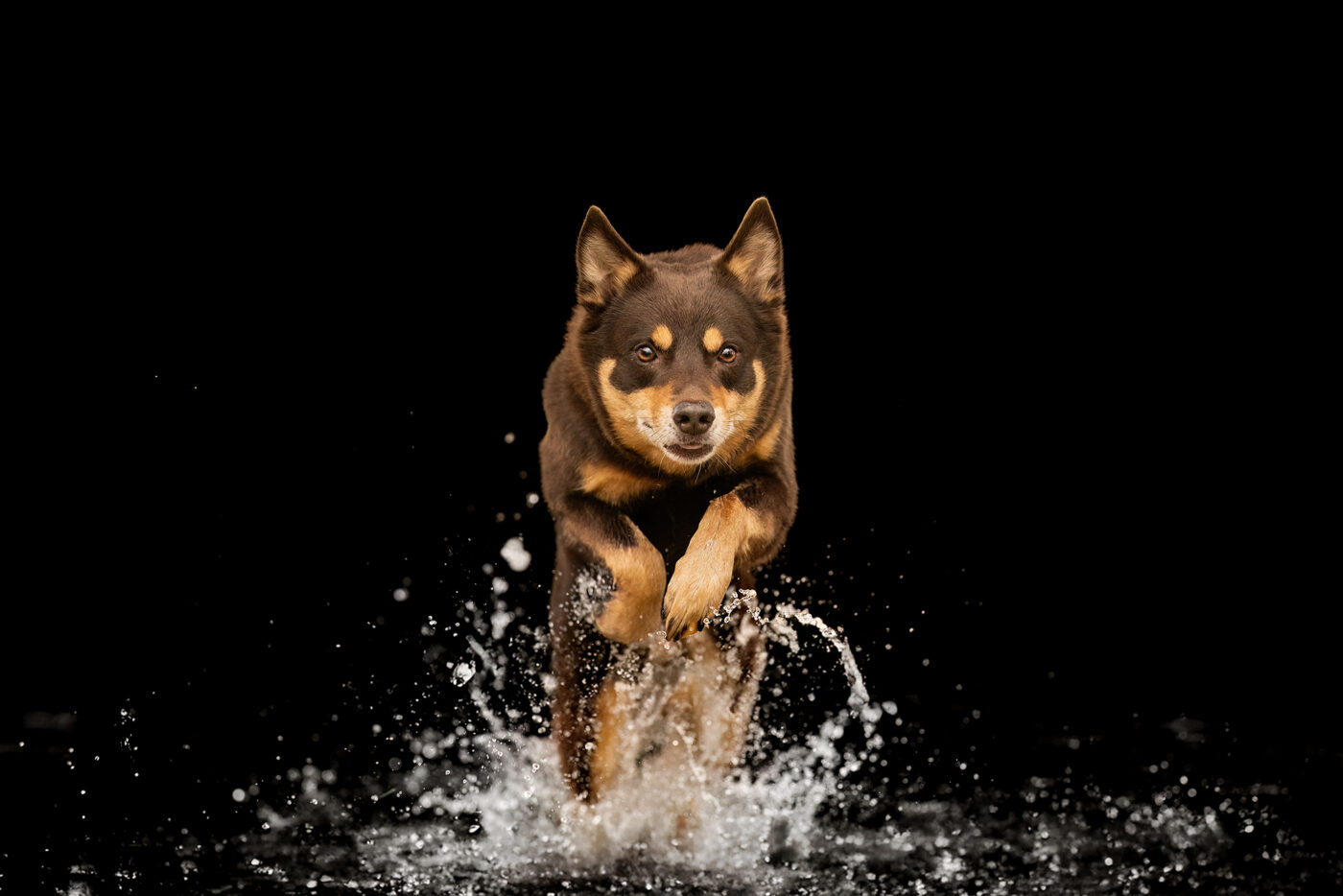 Beim Dark Water Shooting entstehen außergewöhnliche Bilder im seichten Wasser mit Spiegelungen, Dynamik und intensiver Bildwirkung. Diese Aktion ist limitiert und richtet sich an Hundebesitzer:innen, die etwas Besonderes suchen – fernab von klassischen Shootings.