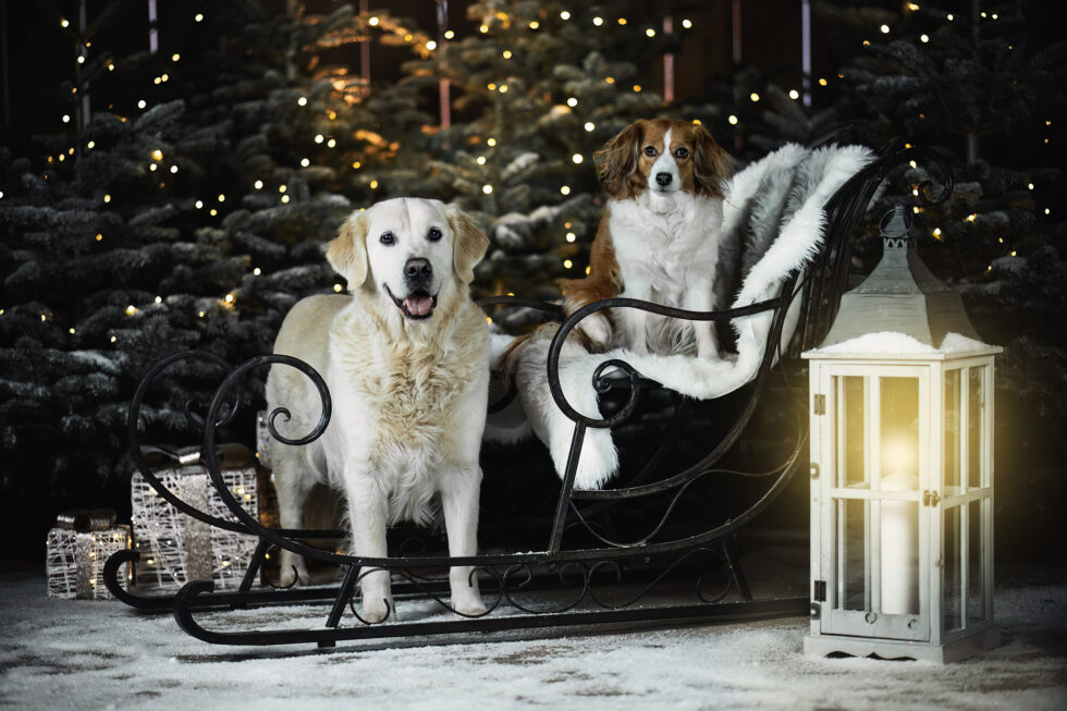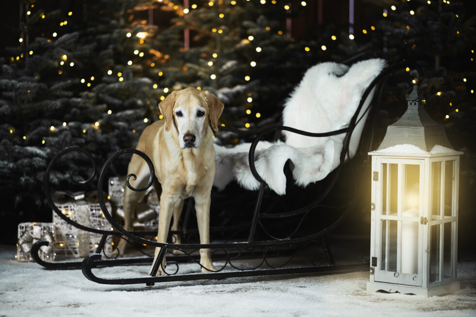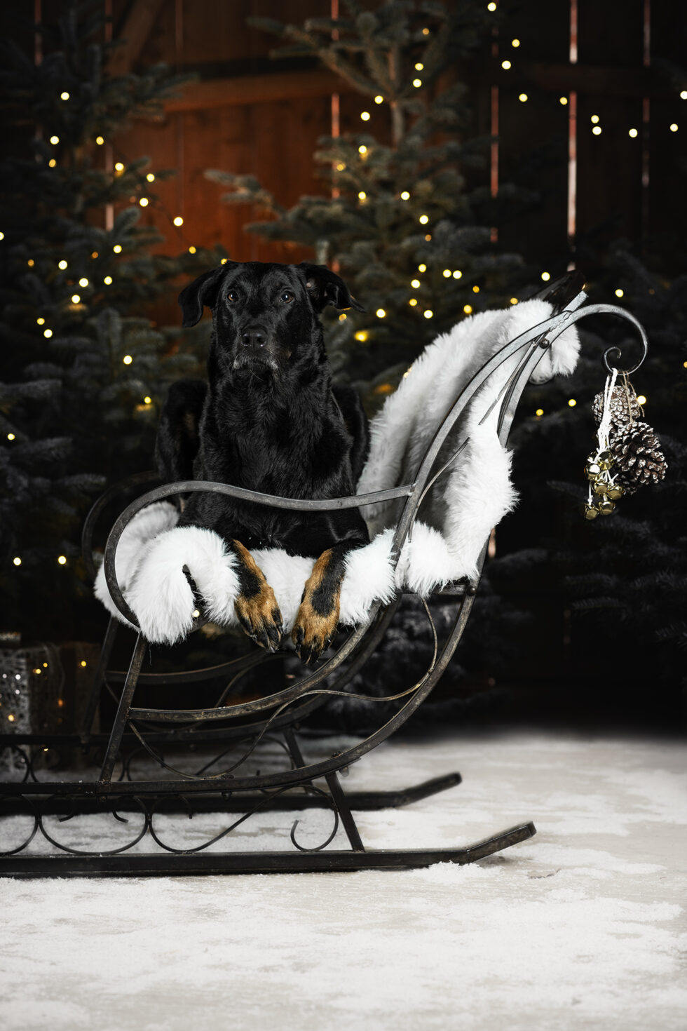 Auch dieses Jahr steht meine Weihnachtsaktion ganz unter dem Motto „Santa Dog is coming“. Mit weißen Christbäumen, Weihnachtsmann-Schlitten und sonstiger Deko.